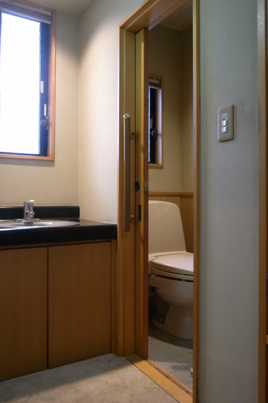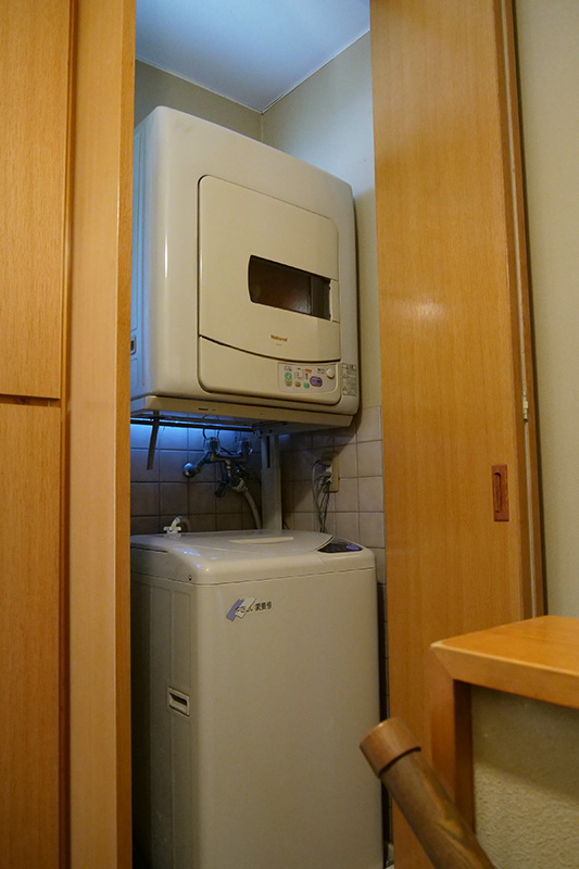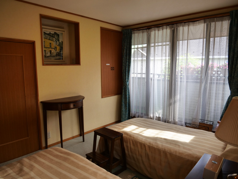Two-storied wooden premises are made up of a western style master bedroom upstairs (twin single), a Japanese style “Tatami” room downstairs serving as either bed room (twin “Futon” single) or tea room, a living/dining room, a kitchenette, two bath rooms downstairs and upstairs, a balcony in front of the master bedroom upstairs, and a Japanese style private garden facing to the living/dining room downstairs.
